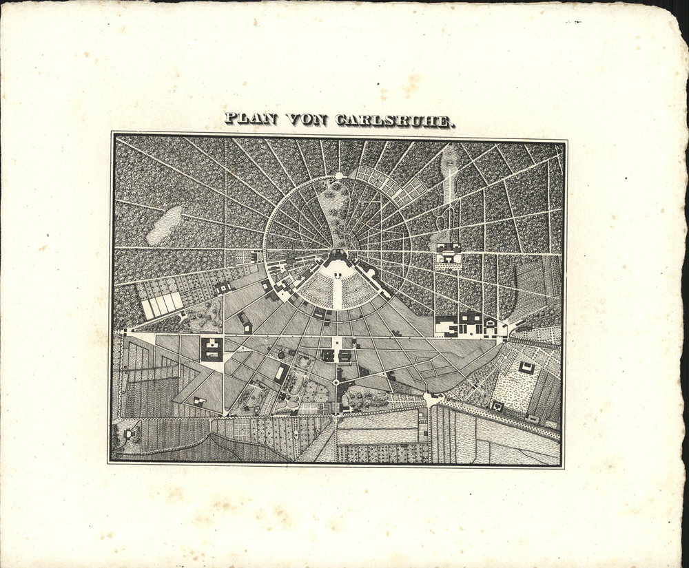 - opschrift marge boven de afbeelding: PLAN VON CARLSRUHE.