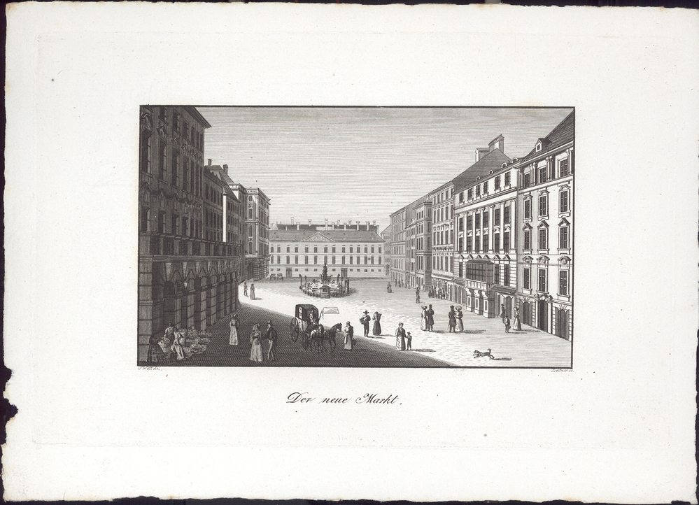 Stadsgezicht met de Nieuwe Markt in Wenen.- Trefwoorden