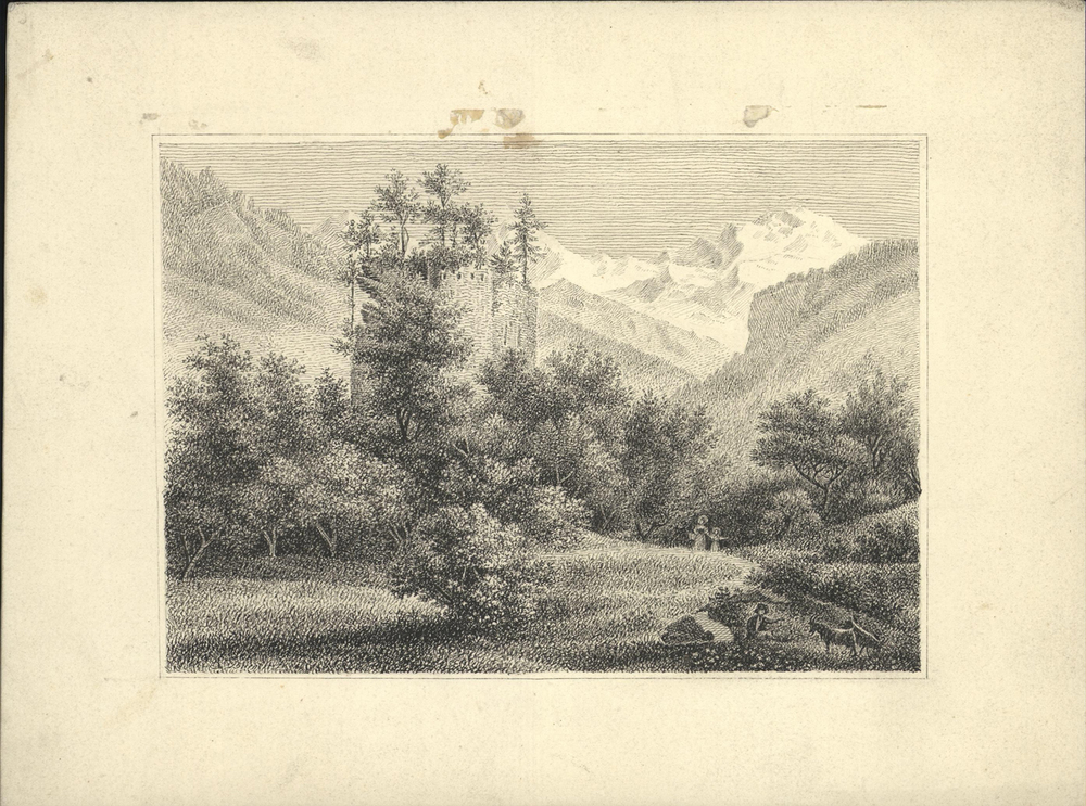 - Vue de ruine du chateau d'Unsprunnen de la Jungfrau