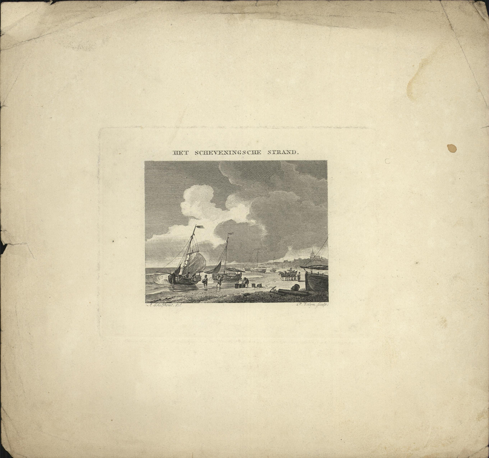- titel midden boven de afb.: Het Scheveningse Strand.
