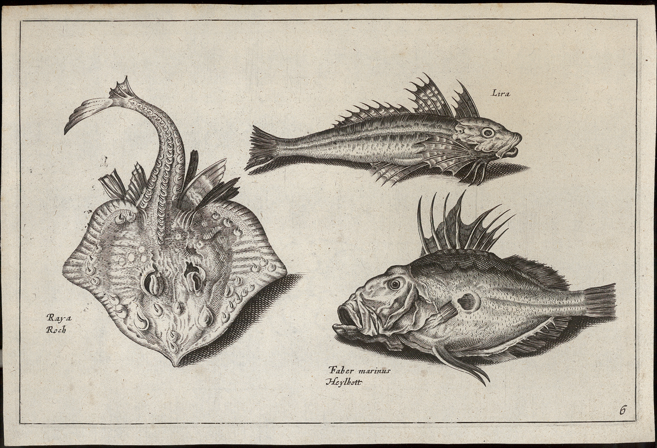 - opschrift bij de afbeelding: Raya - Rog; Lira; Faber marinus - Heylbott