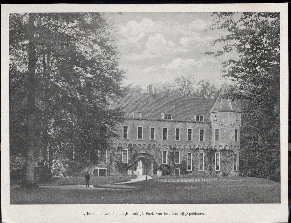 - opschrift onder de afbeelding: "Het oude Loo" in het Koninklijke Park van het Loo bij Apeldoorn.