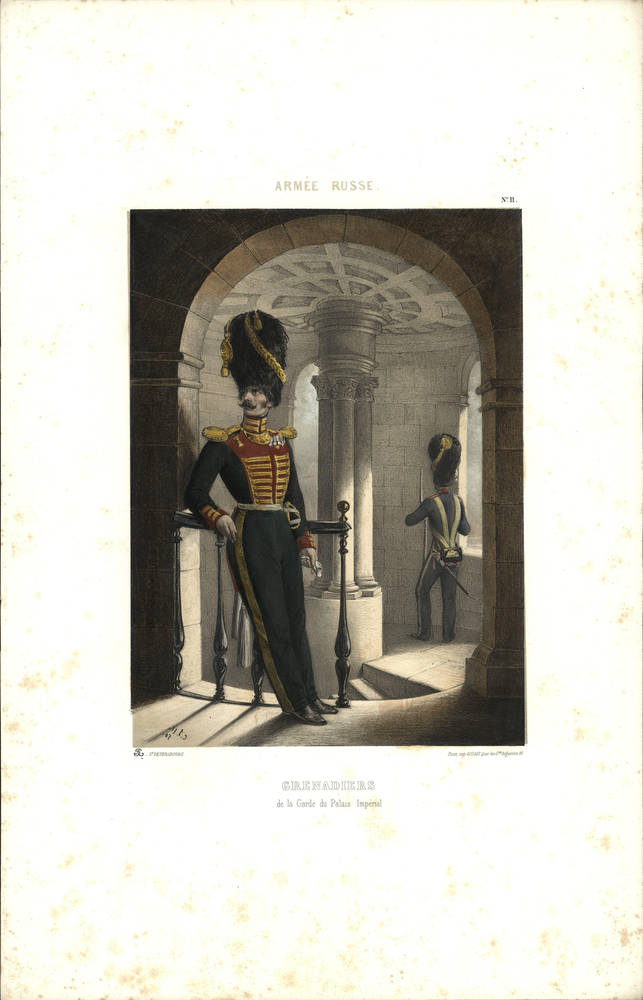 titel midden onder de afbeelding: Grenadiers de la Garde du Palais Impérial: tweede titel bij object