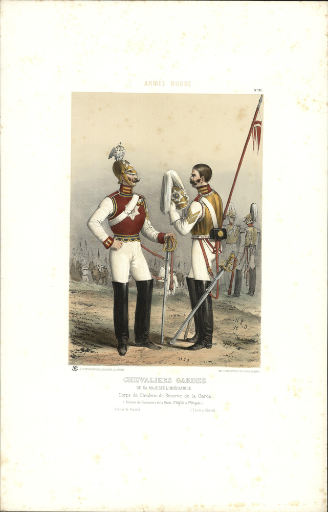 titel midden onder de afbeelding: Chevaliers Gardes de sa Majesté l'Impératrice