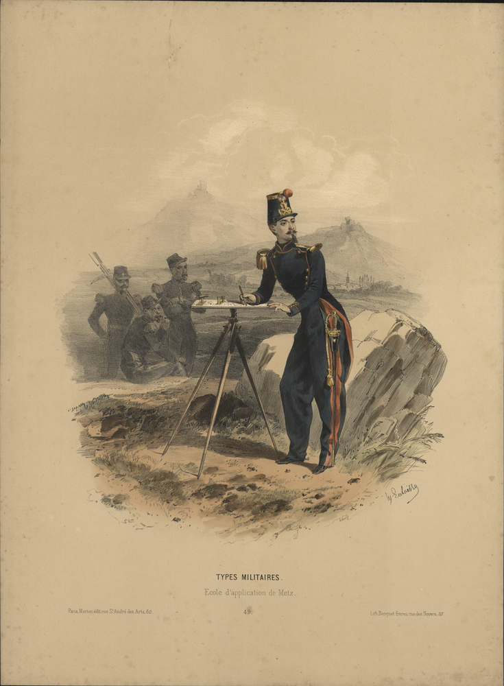 - opschrift midden onder afbeelding: TYPES MILITAIRES./ Ecole d'application de Metz./ 49.