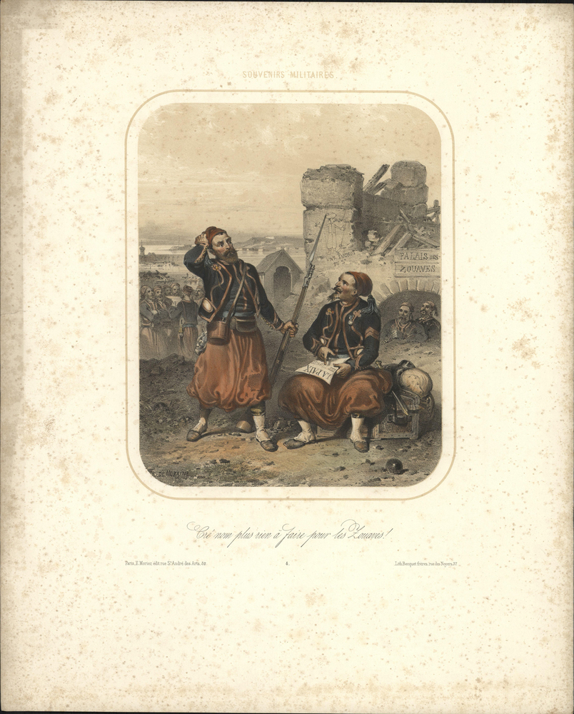 opschrift midden onder afbeelding: Cré nom plus rien à faire pour les Zouaves!