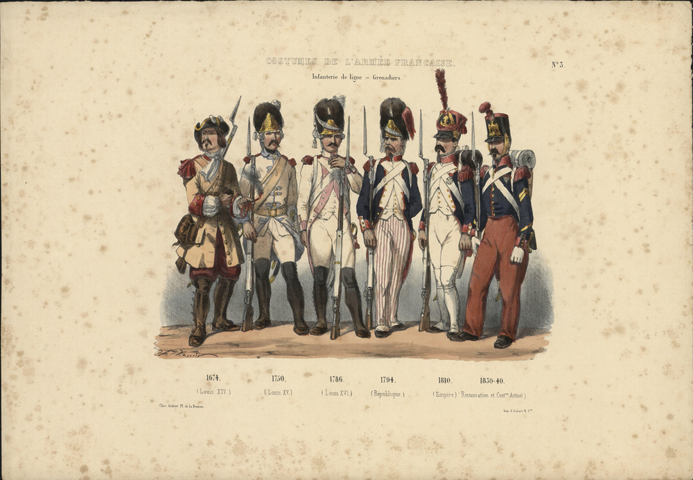 Uit: "Costumes de l'armée française depuis Louis XIV jusqu'à ce jour" / Paris, Aubert