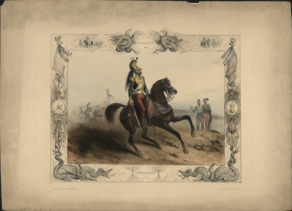 - opschrift midden boven afbeelding: DRAGONS./ 1837.