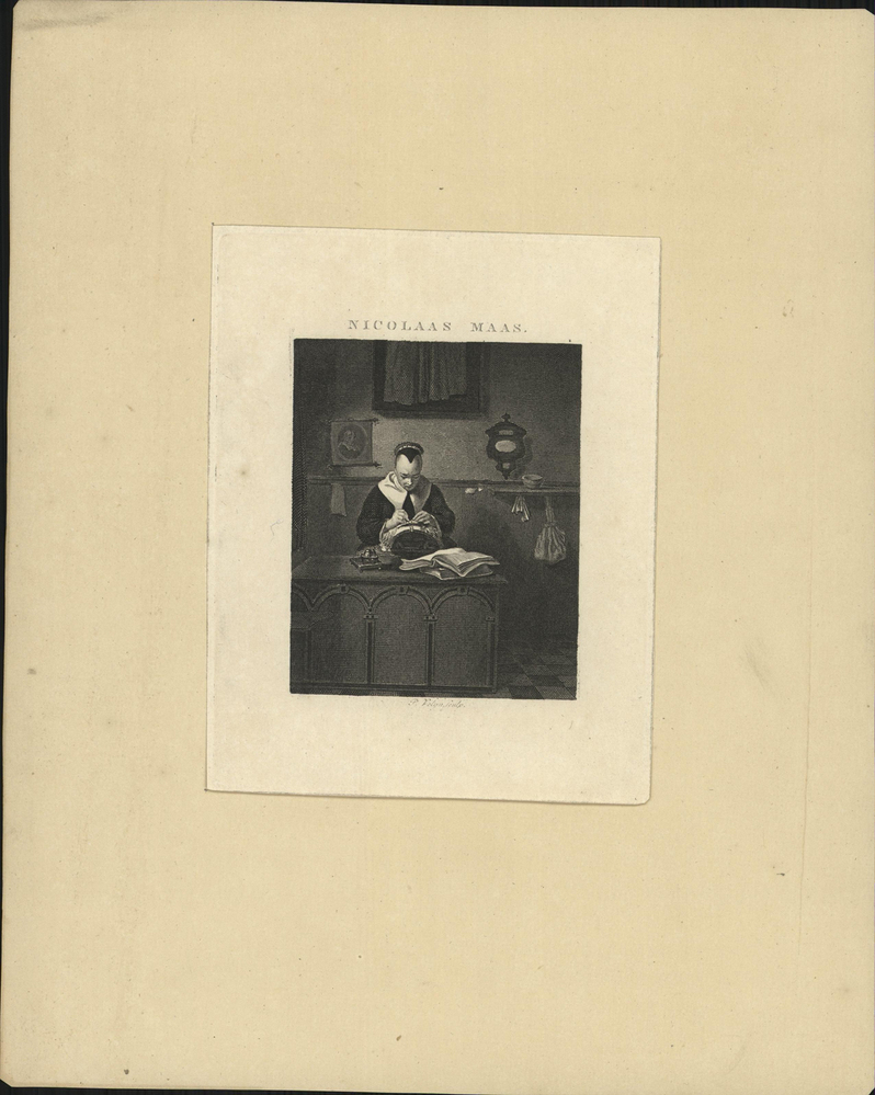 - signatuur midden boven de afb. in de plaat: Nicolaas Maas.