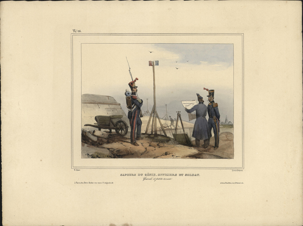 opschrift midden onder in marge: SAPEURS DU GÉNIE, OFFICIERS ET SOLDAT./ Grande et petite tenue