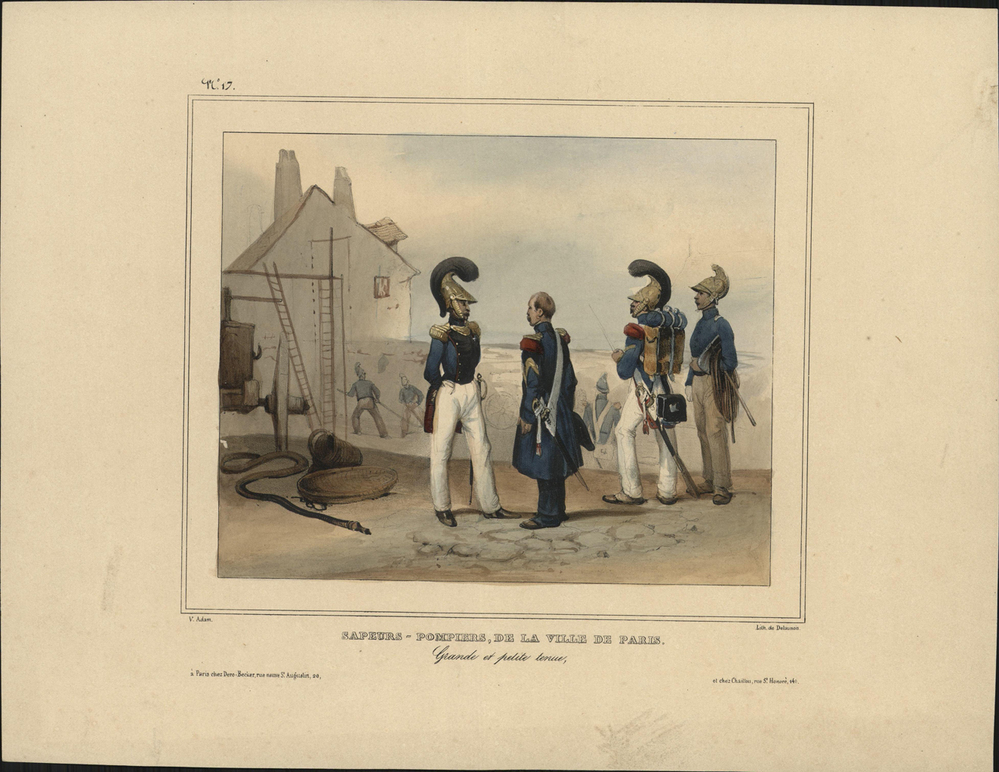 opschrift midden onder in marge: SAPEURS-POMPIERS, DE LA VILLE DE PARIS./ Grande et petite tenue,