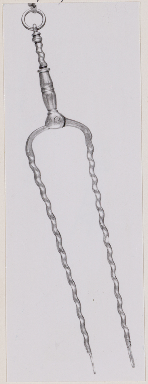 Vuurtang met twee getorste benen, korte greep met ophangring.