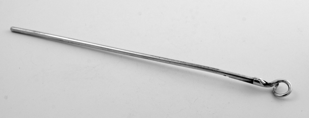 Lange ronde boom gestoken in een manchet die aan de bovenzijde is voorzien van een krul en op de onderzijde op de boom is verlengd.- Trefwoorden