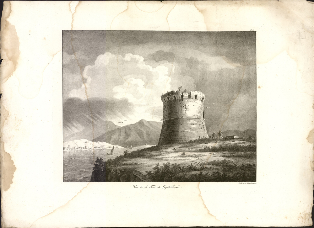 - titel midden onder de afbeelding: Vue de la Tour de Capitello.