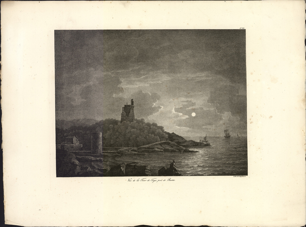 - titel midden onder de afbeelding: Vue de la Tour de Tega près de Bastia.