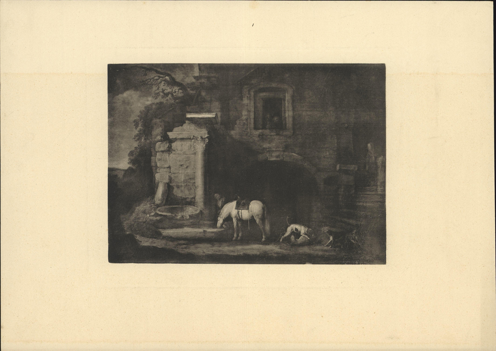 - Ruiter laat zijn paard drinken bij een oude romeinse waterplaats, 1800 - 1899