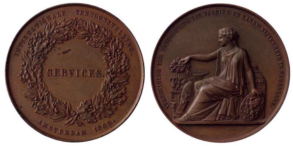 omschrift keerzijde: INTERNATIONALE TENTOONSTELLING. AMSTERDAM 1869.