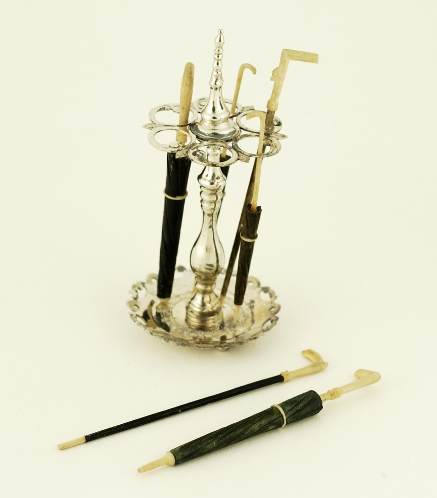 - Paraplustandaard met 2 parapluutjes, 2 parasols en 2 wandelstokken, 1850 - 1878