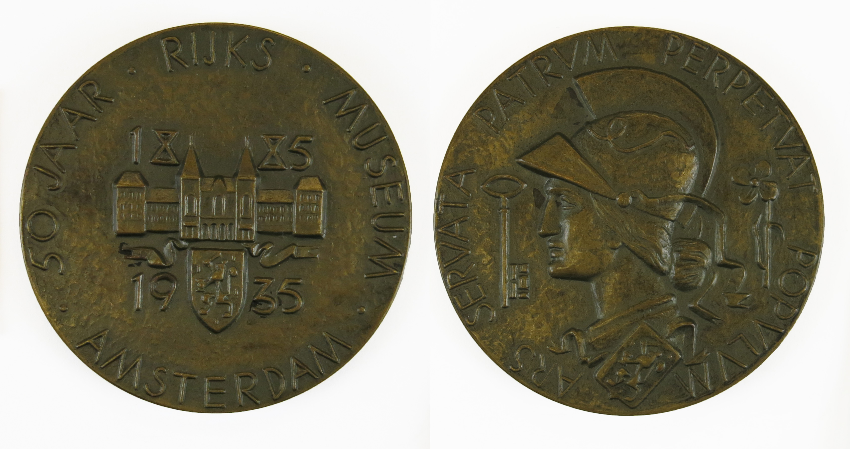 keerzijde: in een omschrift het Rijksmuseum waarboven een jaartal en onder een jaartal met het wapenschild van Nederland met een lint.