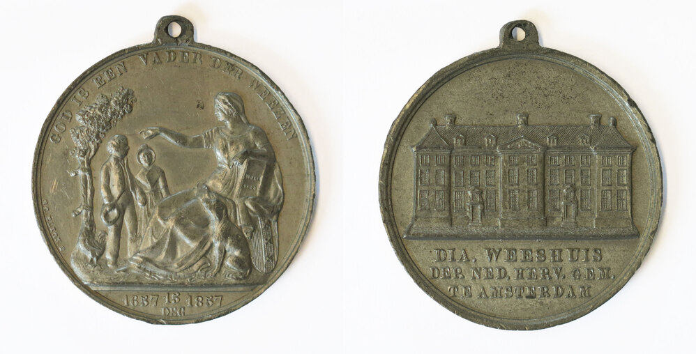 opschrift voorzijde in de afsnede: DIA. WEESHUIS / DER NED. HERV. GEM. / TE AMSTERDAM