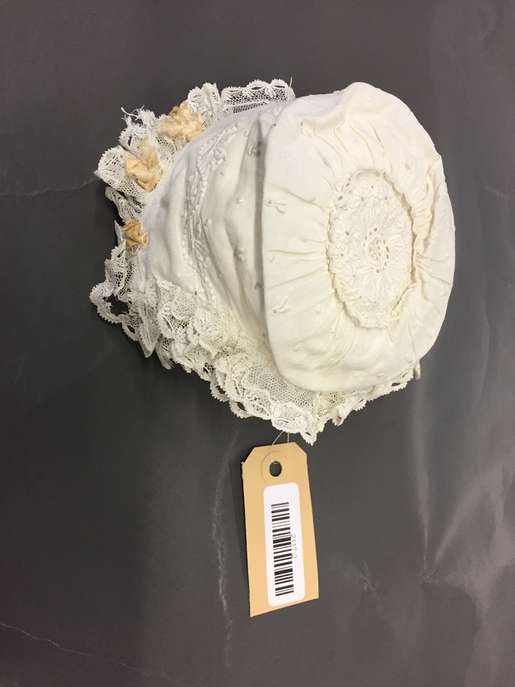 Deze doopjurk is door de Amsterdamse Maria Elisabeth Kotting-Gude in 1833 vervaardigd voor de doop van haar eerste kleinkind. Haar zoon Jan Ludolph Kotting (1809-1841) kreeg zeven kinderen, die allen in deze doopjurk zijn gedoopt. De jurk bleef ook daarna in de familie. Jans dochter Christina Kotting, die in 1868 trouwde met Adrianus Nieuwenkamp, kreeg eveneens zeven kinderen, die allen in dezelfde jurk zijn gedoopt. En ook enkele van Christina’s kleinkinderen, onder wie de moeder van de schenker, hebben de jurk op hun beurt weer mogen dragen. Zo is de doopjurk tot aan het begin van de twintigste eeuw in gebruik gebleven. Bij de doopjurk horen tevens een katoenen onderkleed, een geborduurd batisten overkleed, een geborduurde batisten draagdoek, twee bijbehorende mutsjes en twee tule mitaines. ( Sarah Remmerts de Vries)