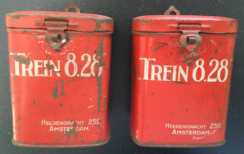 Op weg naar hun werk trof een aantal handelsreizigers elkaar dagelijks in de exprestrein van 8:28 uur van Amsterdam naar Parijs. Aangedaan door een ziekelijk jongetje richtten de reizigers in 1903 een vereniging op om zwakke ‘bleekneusjes’ de kans te geven in vakantiekolonies buiten de stad aan te sterken. De vereniging noemden ze naar de trein waarin ze dagelijks samenkwamen: ‘Trein 8.28 H.IJ.S.M.’ (Hollandsche IJzeren Spoorweg Maatschappij). De heren bleven de tijd in de trein gebruiken om nieuwe leden te ronselen, zodat de vereniging tijdens de eerste ledenvergadering al zo’n 150 leden telde. Deze collectebussen werden gebruikt om geld in te zamelen voor de vereniging. ( Sarah Remmerts de Vries)