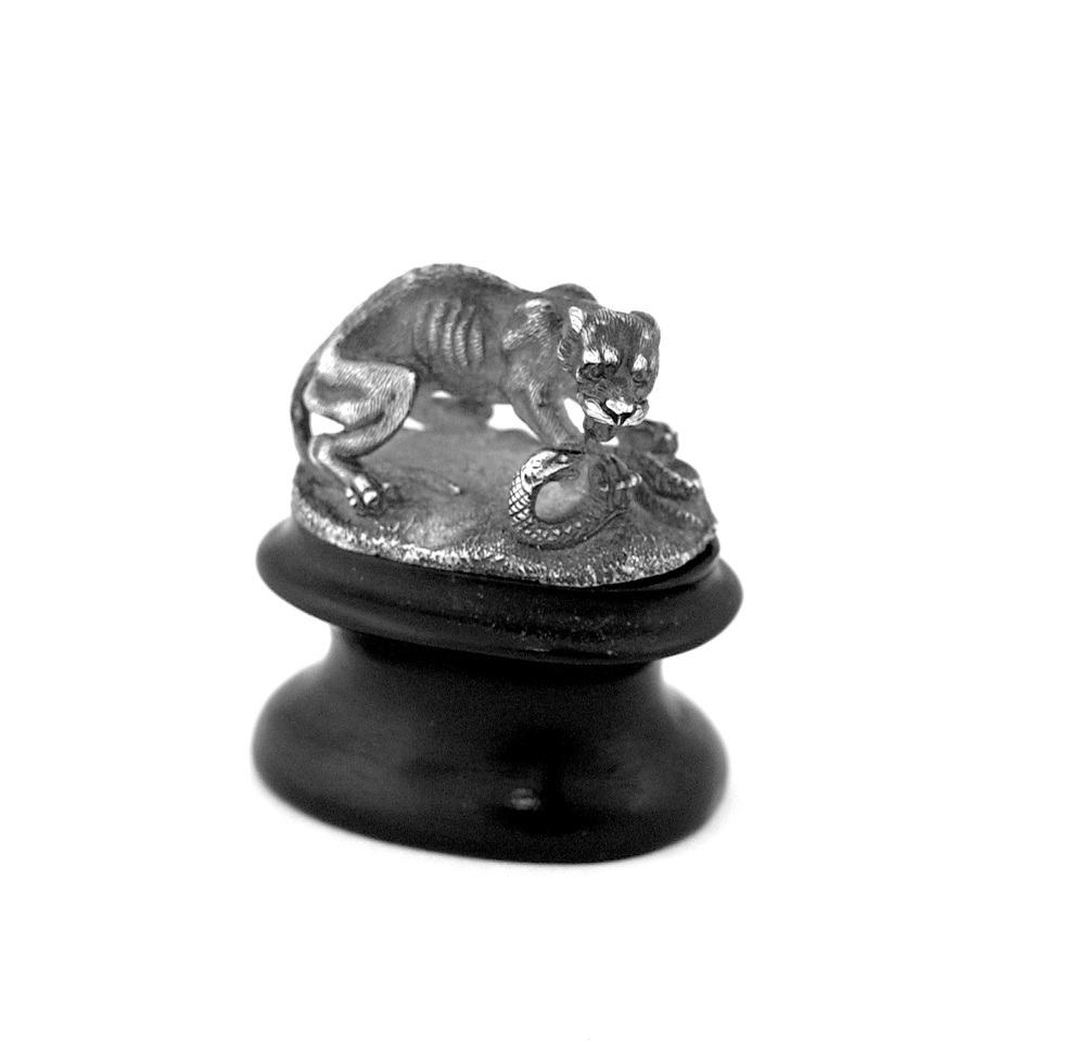 Vechtende panter met slang op ovaal zwart houten sokkeltje- Trefwoorden