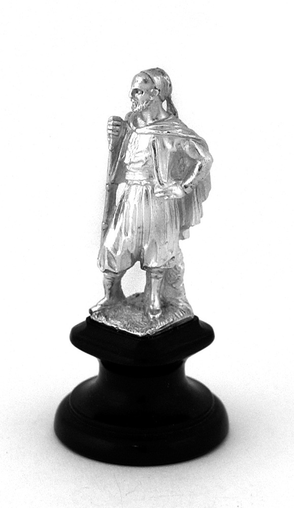 Man met geweer op rond zwart sokkeltje, waarschijnlijk een Griekse partisaan op de vlucht na turkse inval.- Trefwoorden
