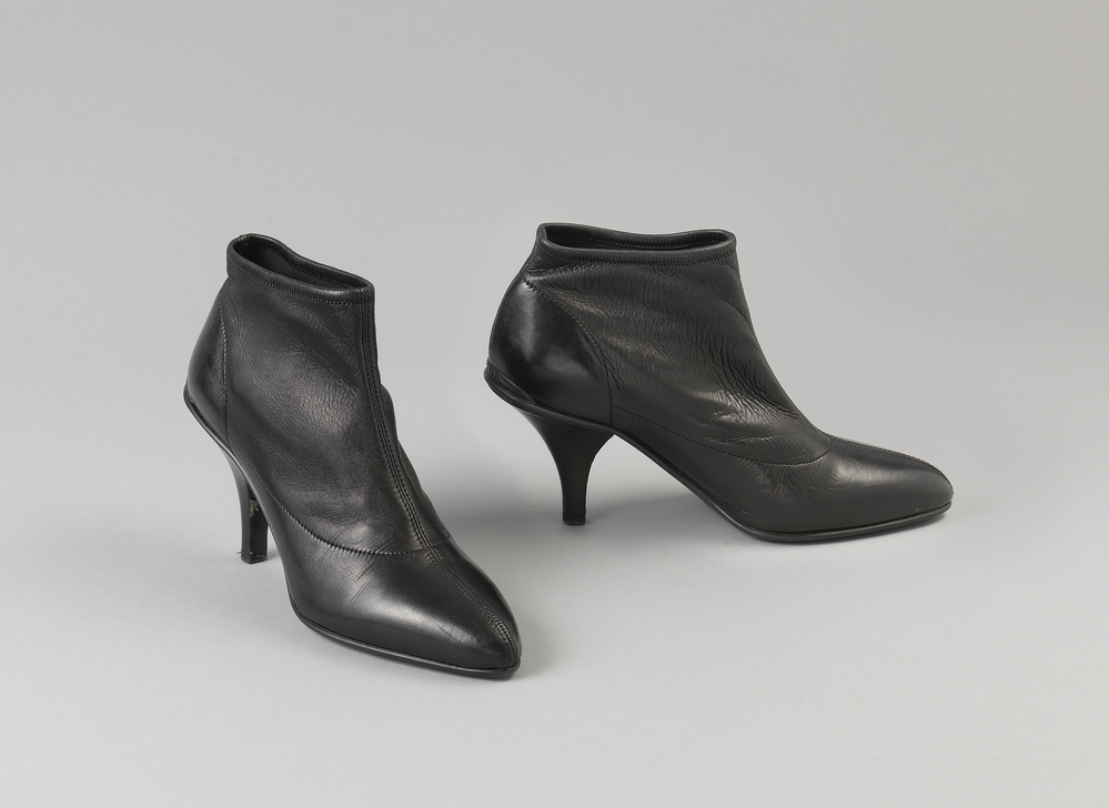 Deze laarzen komen uit het bezit van Ellen Le Roy-Lopes Cardozo (1942). Ellen is een Amsterdams modeicoon, dat met haar prachtige kleding en uiterlijk een bekende verschijning is in de Leidsebuurt. Ze heeft modellenwerk gedaan in Engeland en de Benelux en is werkzaam geweest als inkoper en verkoper van kleding voor verschillende bekende modemerken, waaronder Puck & Hans en modehuis Reflections. Ellens was getrouwd met graficus Guillaume Louis Le Roy (1938-2008), die sinds 1964 in Amsterdam woonde en hier zijn atelier had. Dankzij haar werk in de modeindustrie heeft Ellen zelf ook een grote modecollectie opgebouwd, waaruit ze in 2017 een aantal bijzondere ensembles en accessoires geselecteerd heeft om aan het Amsterdam Museum te schenken. Deze zwarte enkellaarzen zijn van het merk Prada. Ze bevinden zich in een doos met de opdruk: ‘CITY RUBBER ENKELBTY’. ( Sarah en Amelsvoort Remmerts de Vries, Judith van)