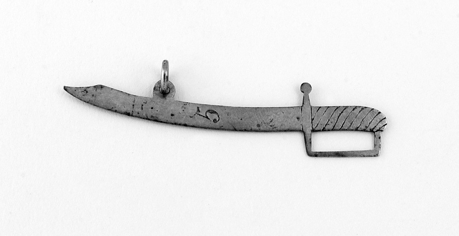 Sabel uit een plaat gezaagd met oog en ring.- Trefwoorden