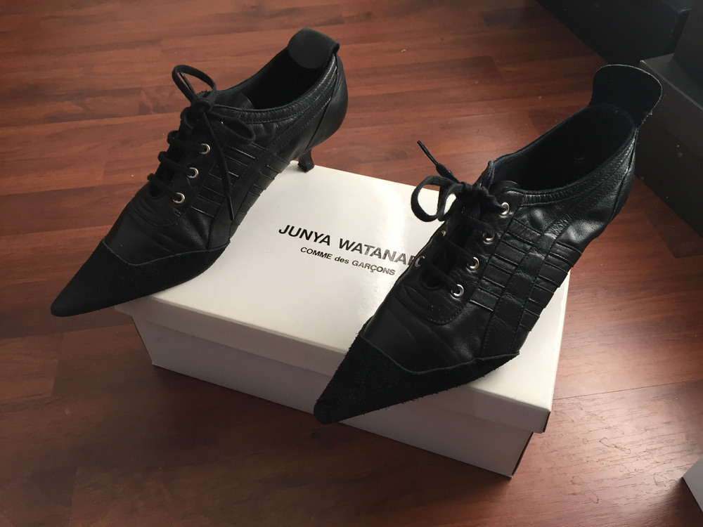 Deze schoenen komen uit het bezit van Ellen Le Roy-Lopes Cardozo (1942). Ellen is een Amsterdams modeicoon, dat met haar prachtige kleding en uiterlijk een bekende verschijning is in de Leidsebuurt. Ze heeft modellenwerk gedaan in Engeland en de Benelux en is werkzaam geweest als inkoper en verkoper van kleding voor verschillende bekende modemerken, waaronder Puck & Hans en modehuis Reflections. Ellens was getrouwd met graficus Guillaume Louis Le Roy (1938-2008), die sinds 1964 in Amsterdam woonde en hier zijn atelier had. Dankzij haar werk in de modeindustrie heeft Ellen zelf ook een grote modecollectie opgebouwd, waaruit ze in 2017 een aantal bijzondere ensembles en accessoires geselecteerd heeft om aan het Amsterdam Museum te schenken. Deze pumps zijn gemaakt van zwart leer met een vetersluiting. ( Sarah en Amelsvoort Remmerts de Vries, Judith van)
