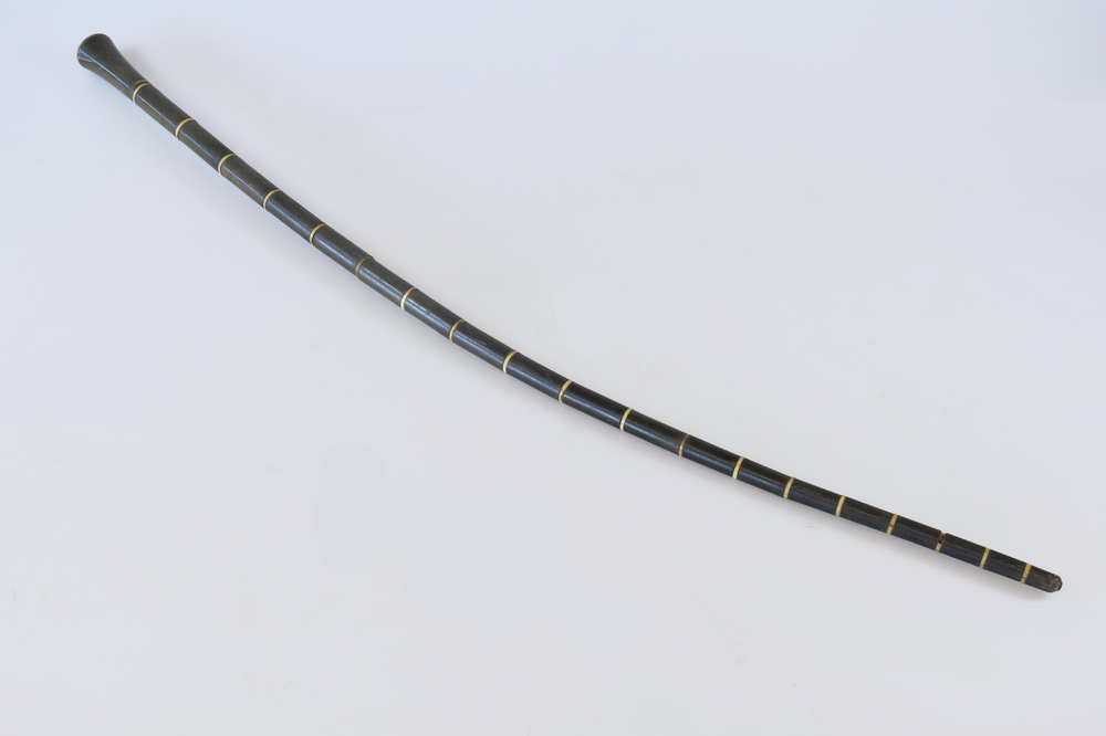 Deze wandelstok komt uit het bezit van de familie Von Baumhauer. Hij is waarschijnlijk door Albert Gilles von Baumhauer (1891-1939) bewaard. Albert werkte als ingenieur in Amsterdam en was getrouwd met Hildegonda J. Oldenhuis Gratama. Albert en Hildegonda waren de grootouders van de schenker. De wandelstok is gemaakt van stukjes bruin en wit been en kent een bijzondere gebogen vorm. ( Sarah en Amelsvoort Remmerts de Vries, Judith van)