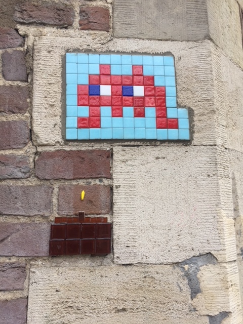 De 'reactivatie' van het tweede mozaïek dat de Franse 'urban artist' werkzaam onder het pseudoniem Invader ooit in Amsterdam heeft geïnstalleerd.- Trefwoorden