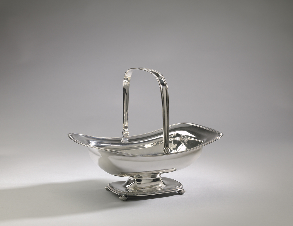 Een bolvormige gesloten soezenmand, op vier pootjes met godronen motief, op standvoet. de bovenkant met een breder uitlopend hengsel.- HerkomstChristie's Amsterdam, december 2010