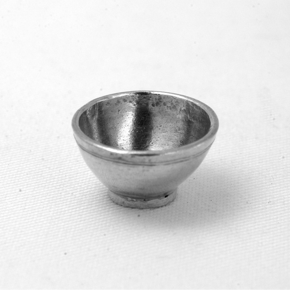 Gladde kom op voetrand met op de buitenzijde een enkele groef als randversierin