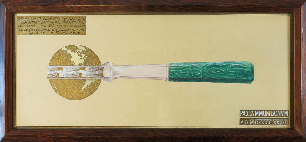 - Ontwerp van de voorzittershamer die Carl Bonebakker in 1932 ter opening van de Ontwapeningsconferentie aan de Volkenbond schonk, 1932