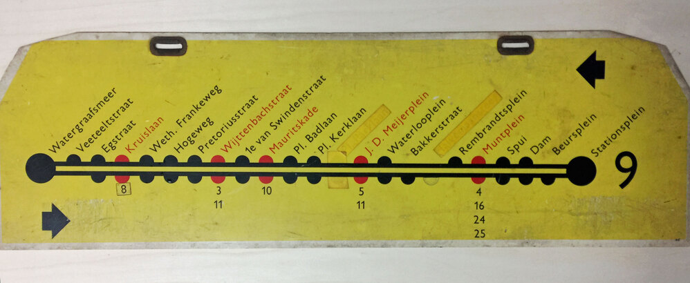 - Routebord tramlijn 9, 1975 - 1995
