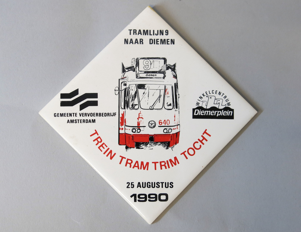 - Tegeltje tramlijn 9 naar Diemen, Trein-tram-trimtocht op 25 augustus 1990, 1990