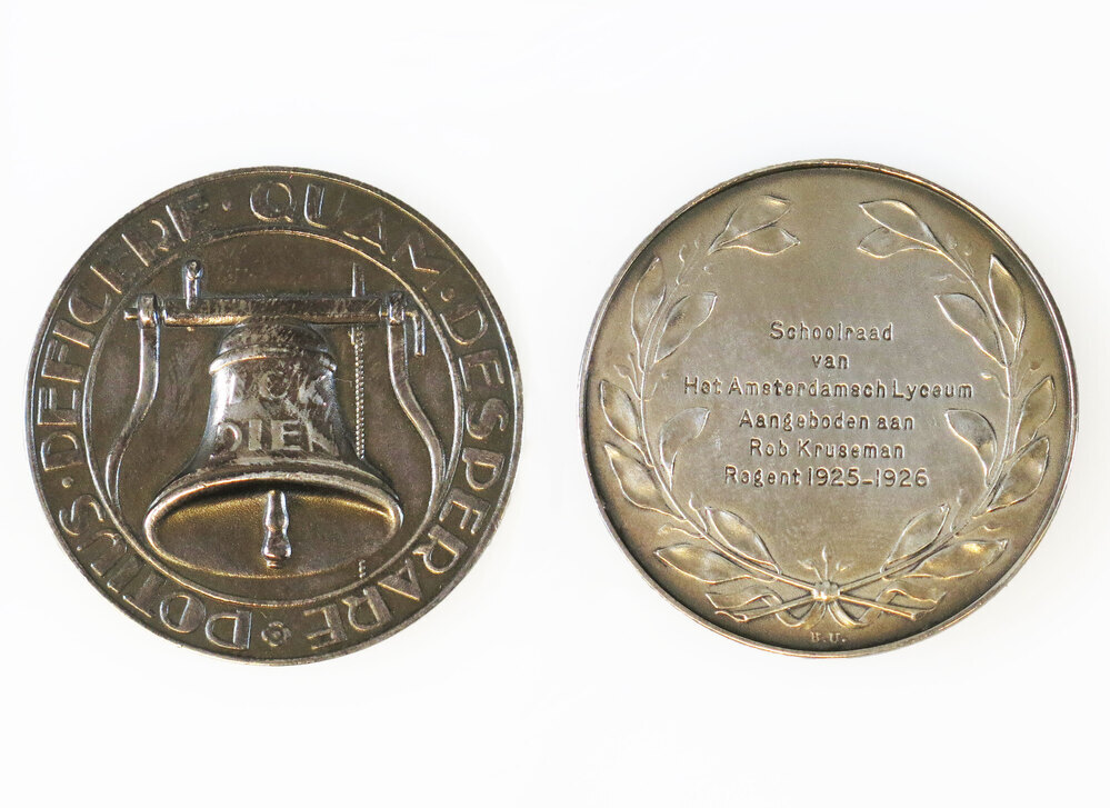 opschrift keerzijde: Schoolraad / van / Het Amsterdamsch Lyceum / aangeboden aan / Rob Kruseman / Regent 1925-1926