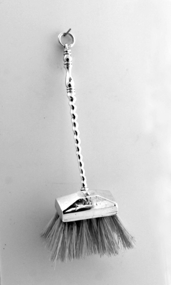 Rechthoekige rug met op de onderzijde de haarinzet; langs de buitenzijde een gegraveerde lijn, bovenzijde gefacetteerd, getorste steel met balustervormige greep eindigend met oog en ophangring.