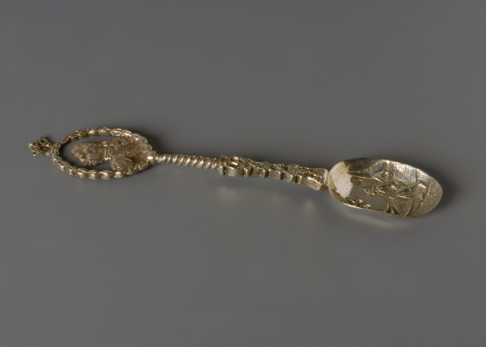 gegoten lepeltje met op de kop een uitgezaagd medaillon van de stadhouder van Oranje- Trefwoorden
