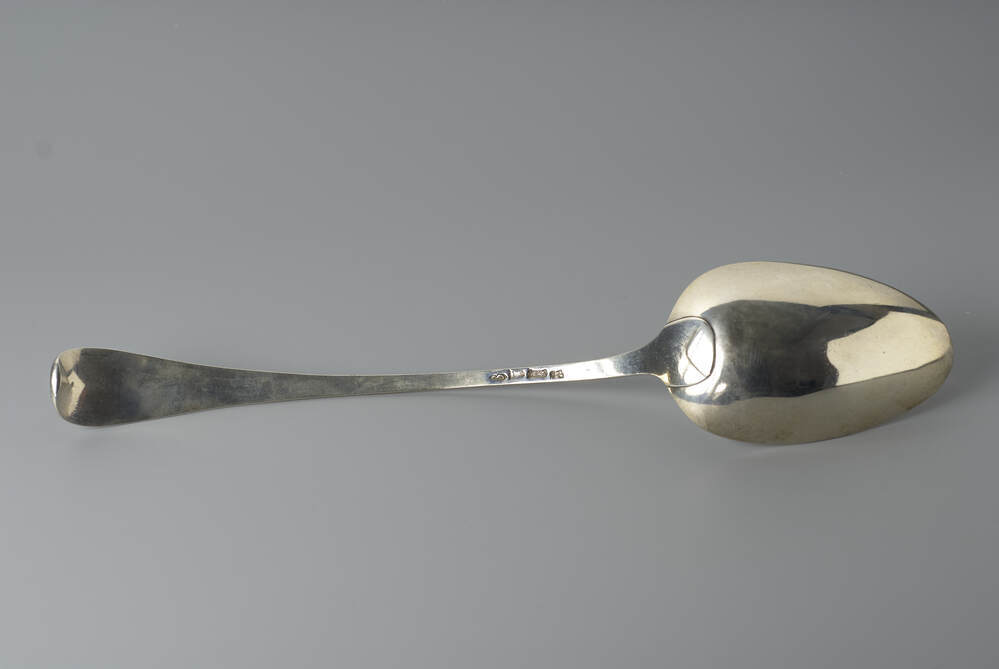 Lepel met puntig ovale bak, steel met afgeronde kop en enkel lof.- Trefwoorden