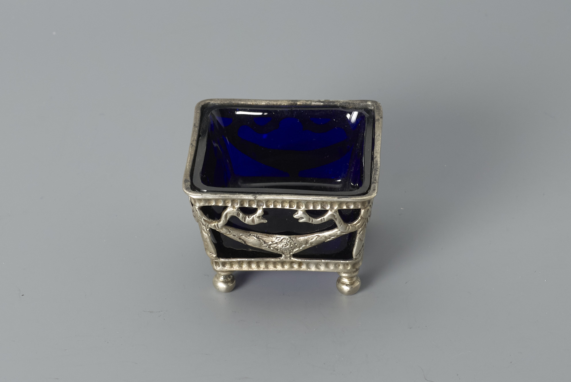 rechthoekig montuur op vierpootjes met blauwglazen binnenbakje- Trefwoorden