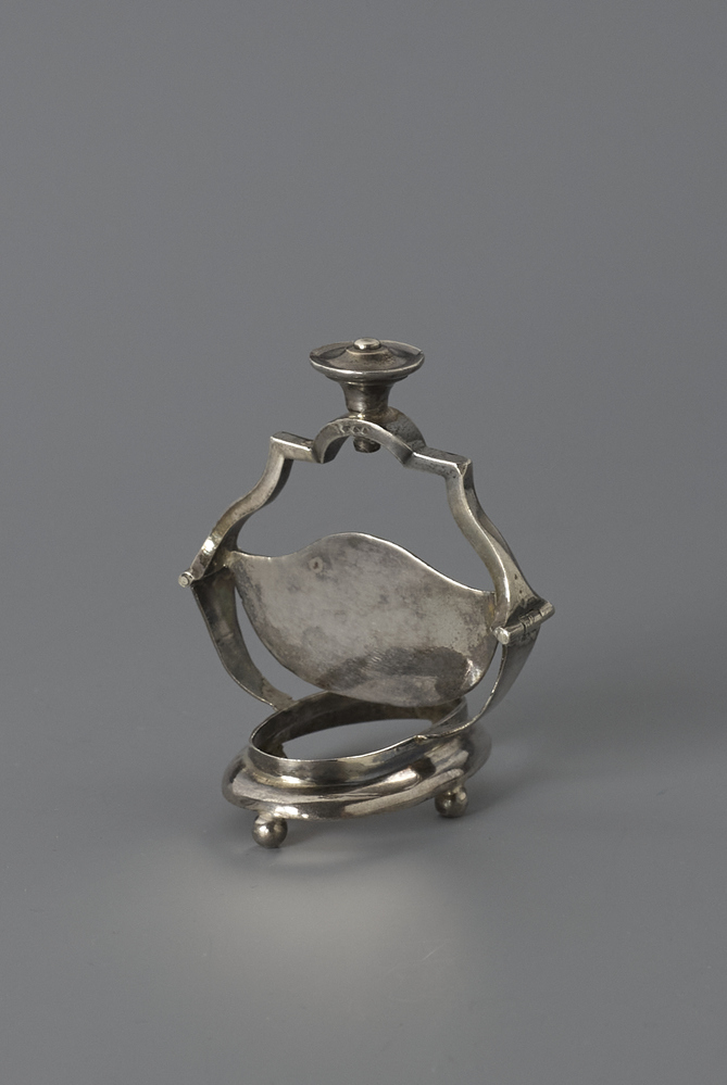 Houder of montuur van en glazenbakje mogelijk dienend voor kruiden of suikers.- Trefwoorden