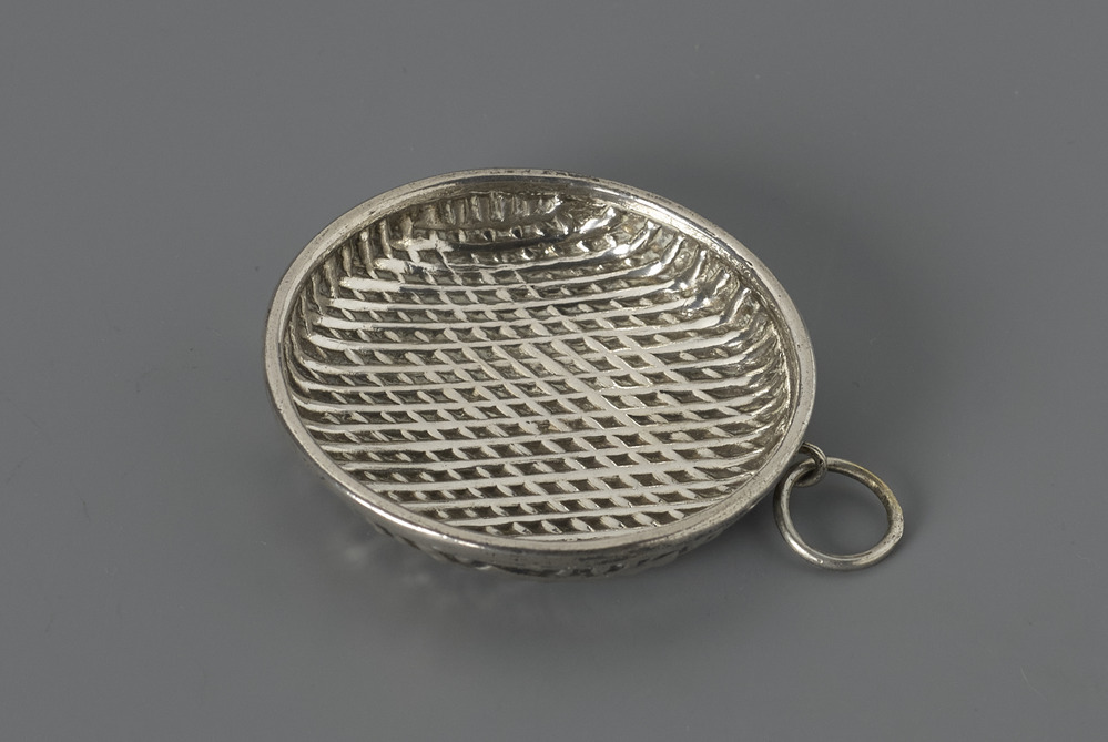 Ronde schaal met gestampt vlechtwerk decor met oog en ophangring