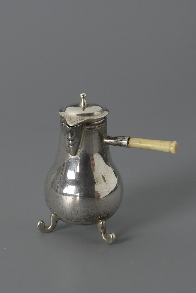 Coninsche koffiekan met haaks op elkaar staande greep en tuit.- Trefwoorden