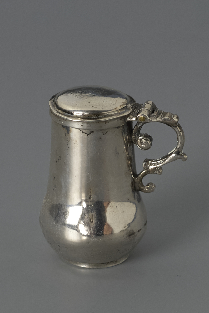 meesterteken onderzijde: FVS in ovaal : Frederik van Strant II, werkzaam van 1727 tot na 1749; Bron: Citroen 1975, nr.235; Voet 1912, nr. 243 a; Duysters 1999, nr. 9 - schenking 2020