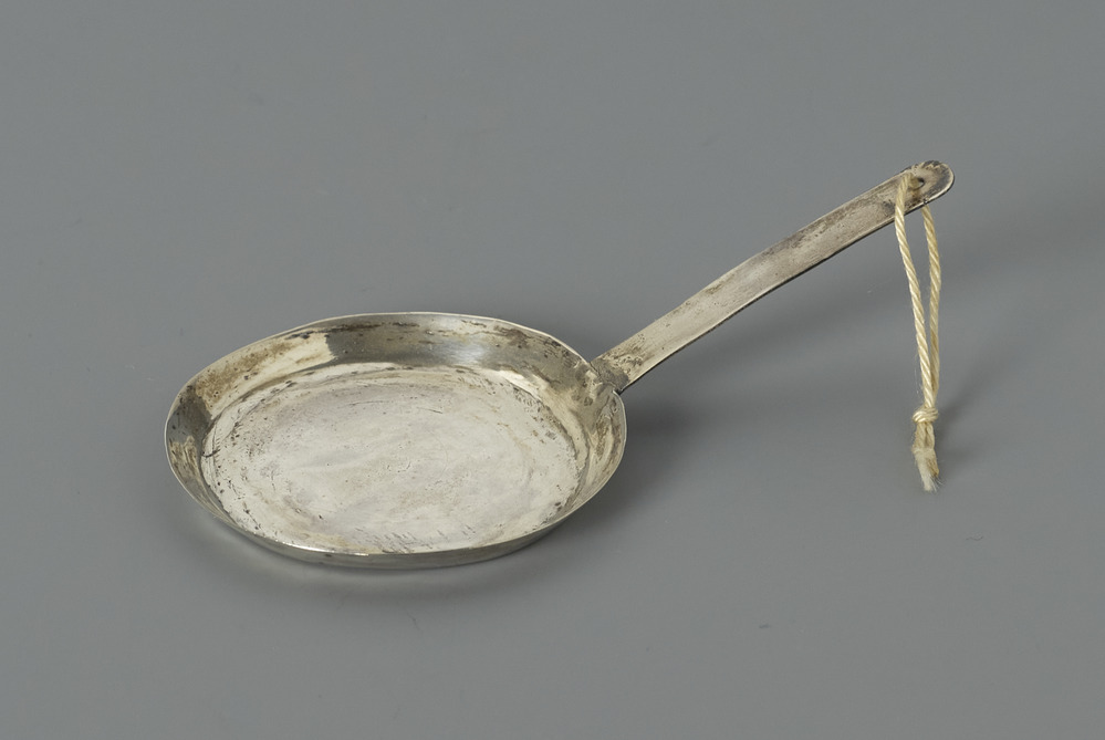 Gladde ronde pan met een platte aangezette steel met ophanggat.- Trefwoorden