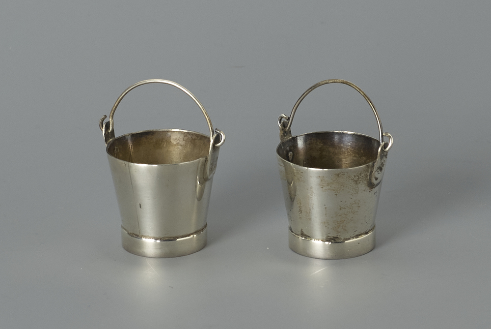 Twee identieke emmers met gladde wand, hoge voetring, glad hengesel.- Trefwoorden