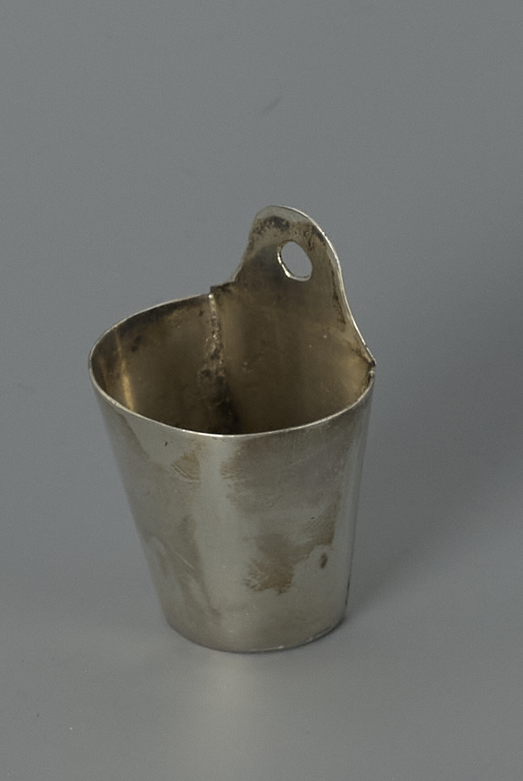 Conische cilinder de achterzijde afgevlakt en doorstekend met ophangoog.- Trefwoorden